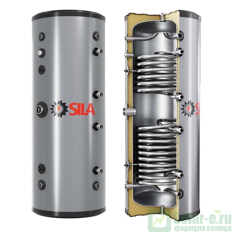 Напольный бойлер косвенного нагрева SILA SSL-300-D PREMIUM (бак аккумулятор) объемом 300 литров из качественной нержавеющей стали SUS316L с двумя теплообменниками увеличенного диаметра, площадью 3.73м2, предназначен для нагрева, аккумулирования и последующего использования горячей воды для отопления и горячего водоснабжения вашего дома. Использование в системе бака аккумулятора SILA SSL-300-D значительно увеличивает ее ЭФФЕКТИВНОСТЬ и БЕЗОПАСНОСТЬ, предотвращая закипание и прочие неприятности. Эффективная работа твердотопливного котла или теплового насоса без бака аккумулятора – НЕВОЗМОЖНА, КПД системы снижается в разы, тепло в прямом смысле этого слова вылетает в трубу.